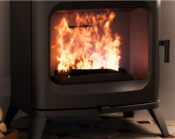 La sua caratteristica porta “oblò” offre un’ampia visione della fiamma, ricordando l’atmosfera accogliente e romantica delle tradizionali stufe a legna.
