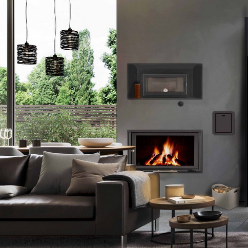 La sua unica camera di combustione permette l'utilizzo della legna come un termocamino tradizionale, oppure del pellet con il portellino laterale. Comoda e funzionale grazie all'accensione programmabile e alla gestione del pellet semplificata, varia la caduta e l'aspirazione di quest'ultimo per avere la massima autonomia.