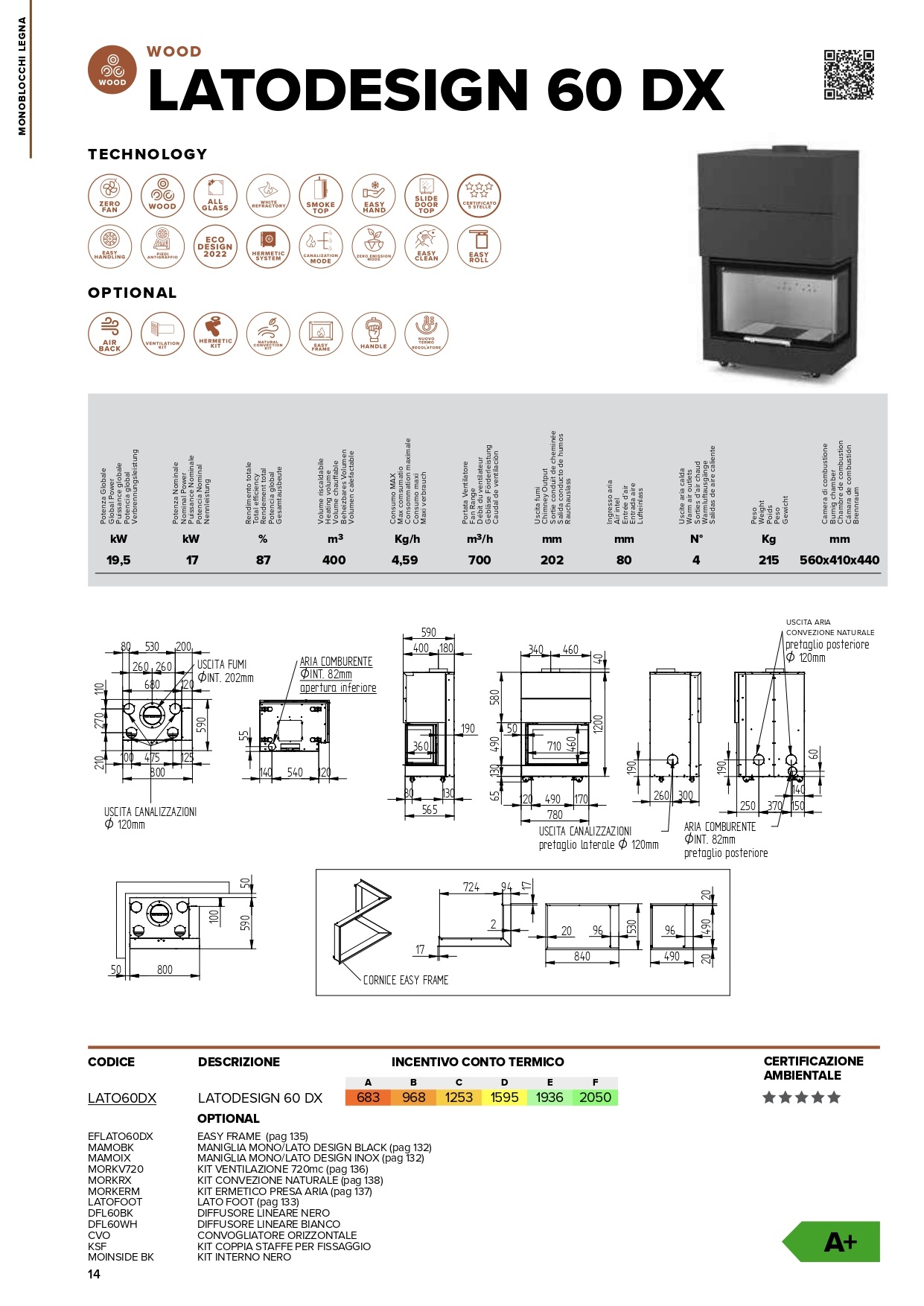 Camino a Legna Latodesign 60 DX Moretti Design, con porta angolare DESTRA di dimensioni contenute. Lo stile . identificato dalla PORTA ANGOLARE che permette la visione della fiamma da 2 lati.