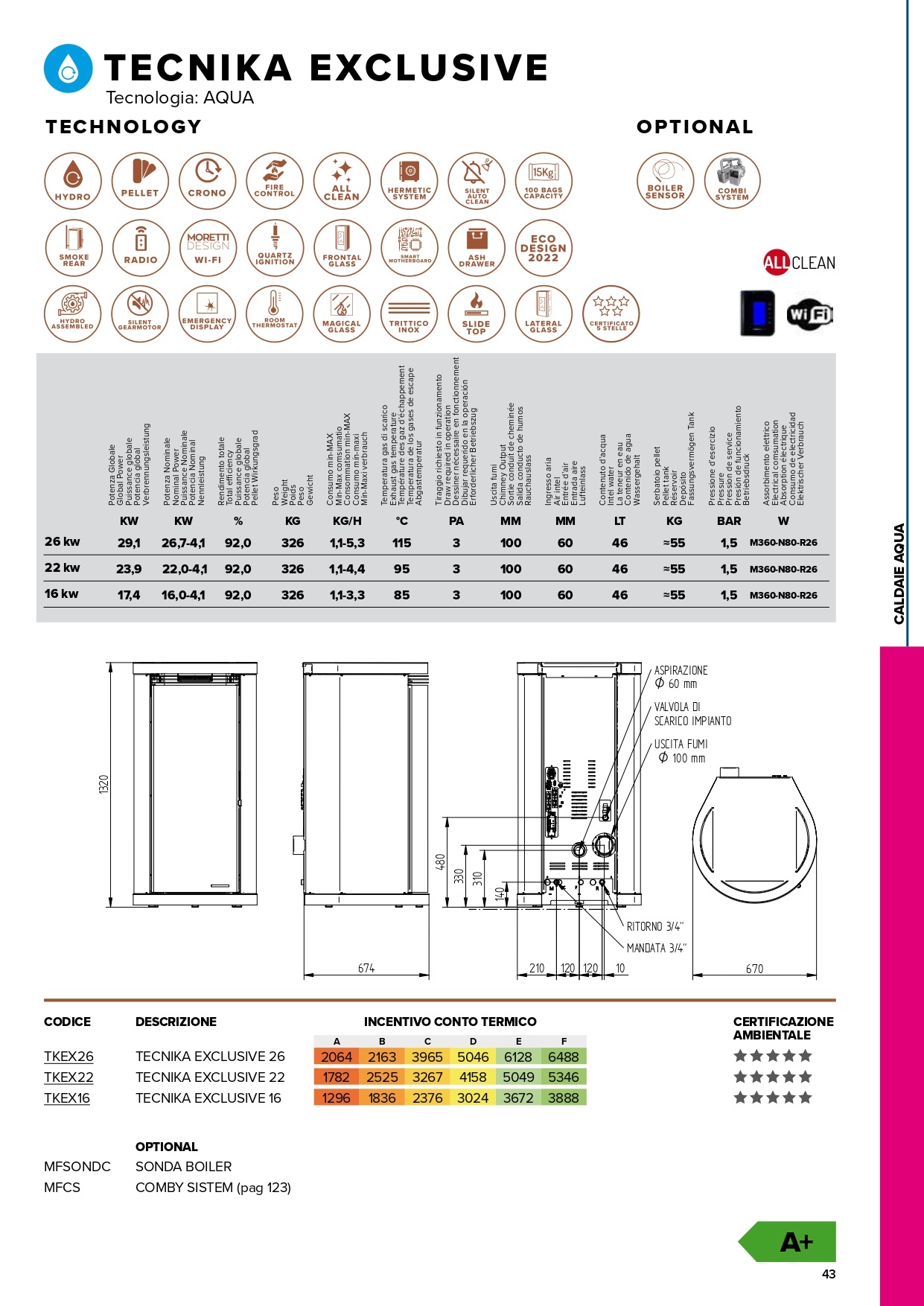 Caldaia a Pellet Tecnika Exclusive 16 Moretti Design, con il conto termico in fascia D recuperi fino a 3024,00 euro, certificata 5 stelle !!