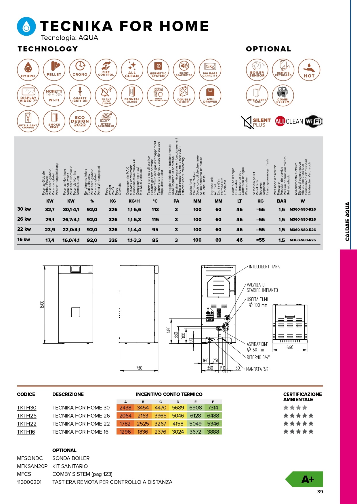 Caldaia a Pellet Tecnika for Home Aqua 22KW Moretti Design